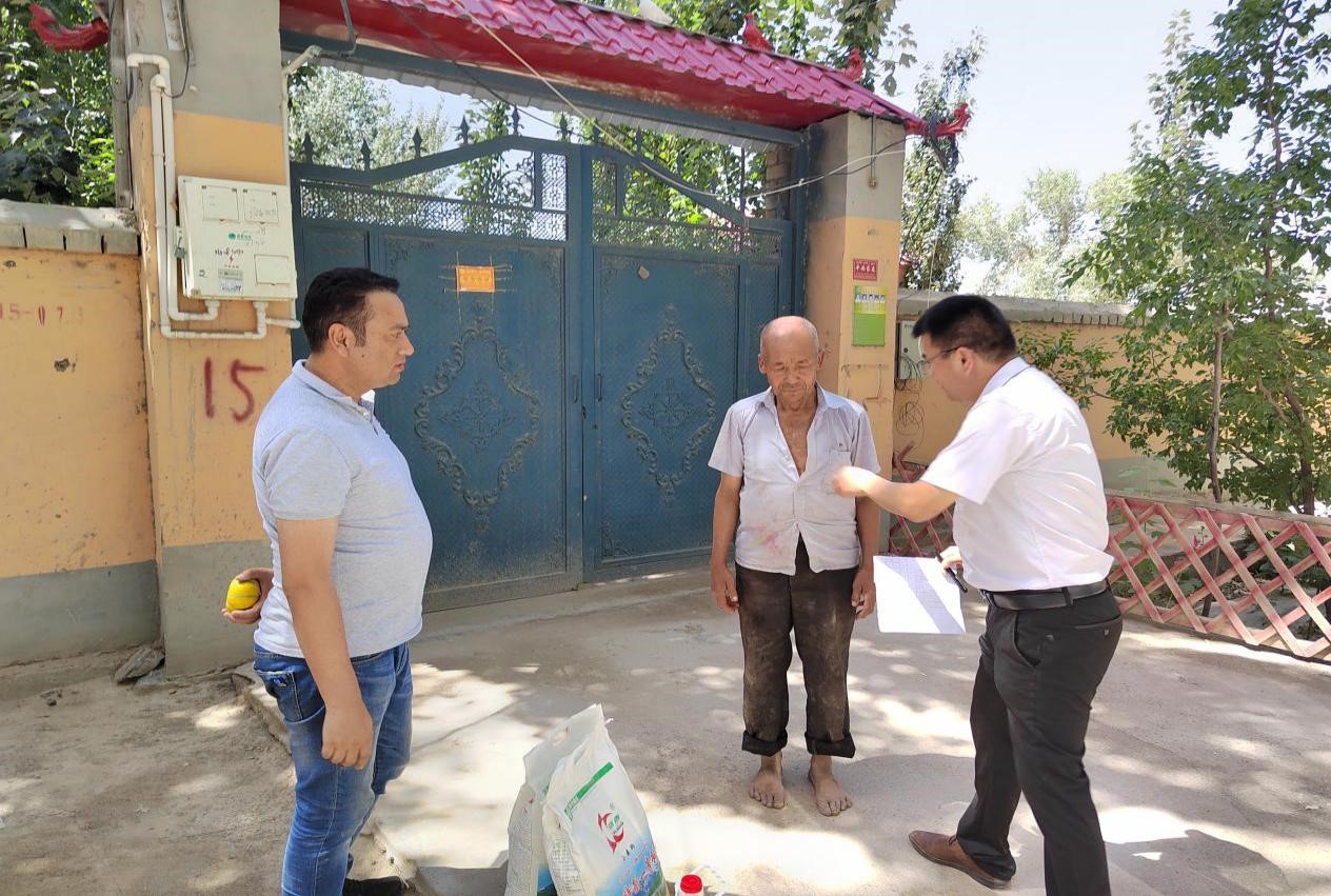 阿不來提·牙生老人遠遠看見工作隊后喜笑顏開,雙手接過劉書記手中的慰問品激動的說:“感謝黨,感謝工作隊一直以來對我的照顧。”阿不來提·牙生有個殘疾的兒子,工作隊每逢重要節(jié)日都會走訪慰問,給其兒子申請了低保和殘疾補貼,并指導(dǎo)阿布來提·牙生搞種養(yǎng)殖業(yè),這從很大程度上解決他們家的困難問題。