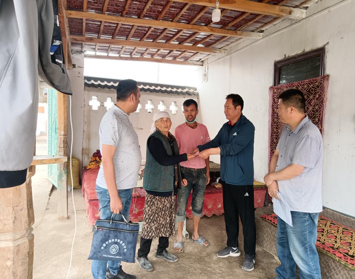 6月24日,新疆畜牧獸醫(yī)學(xué)會會員、新疆畜牧科學(xué)院駐色力布亞鎮(zhèn)拜什吐普(15)村工作隊隊長第一書記劉應(yīng)進帶領(lǐng)“訪惠聚”工作隊員開展老黨員和貧困黨員走訪慰問活動。在這“七一”建黨節(jié)前夕,為老黨員和生活貧困的黨員送上了節(jié)日的問候,帶來了大米、面粉、食用油等生活用品,讓老黨員和困難黨員在生活上得到了幫扶、精神上得到了安慰,切身體會到了黨組織的關(guān)懷和溫暖,也拉近了駐村工作隊和村黨員的距離。