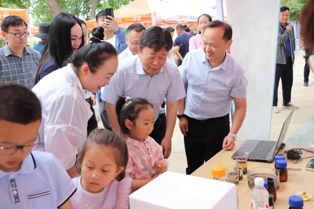 5月18日上午,2024年昌吉州、市科技活動周暨“全國科技工作者日”啟動儀式在昌吉市濱湖河中央公園舉行。昌吉州黨委常委、昌吉市委書記李長江參加啟動儀式并參觀了科普展覽。昌吉學院黨委常委、副校長李碩參加啟動儀式,并為昌吉學院新疆低階煤高值化綠色利用重點實驗室中試基地授牌。昌吉學院科研處、化學與化工學院、物理與材料科學學院、航空學院、能源與控制工程學院、信息工程學院及教育科學學院百余名師生參加此次活動。昌吉學院作為協(xié)辦單位積極組織各學校參加科普活動展示。