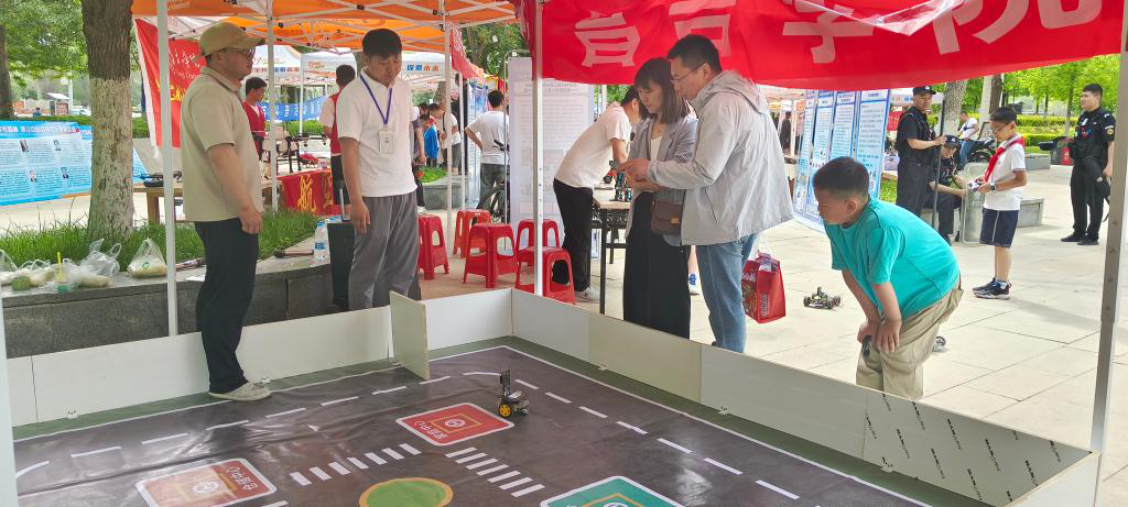 ▲信息工程學院師生向?qū)W生及市民科普“ROS智能小車”