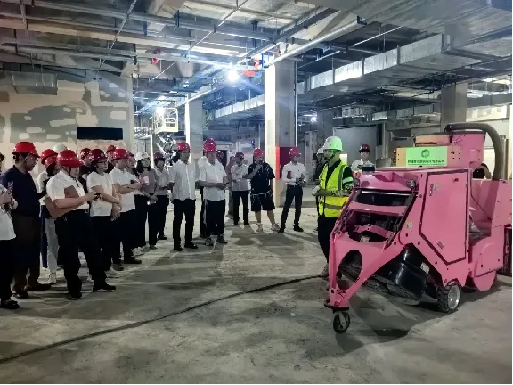 新疆新建聯(lián)項目管理咨詢有限公司總工程師沈斌帶領(lǐng)大家觀摩建筑機器人在施工現(xiàn)場的應(yīng)用。與會人員實地觀摩了四輪混凝土整平機、混凝土履帶抹平機、墻面處理一體機等建筑機器人在建筑墻面的打磨、噴涂等施工作業(yè)中的高效表現(xiàn)。