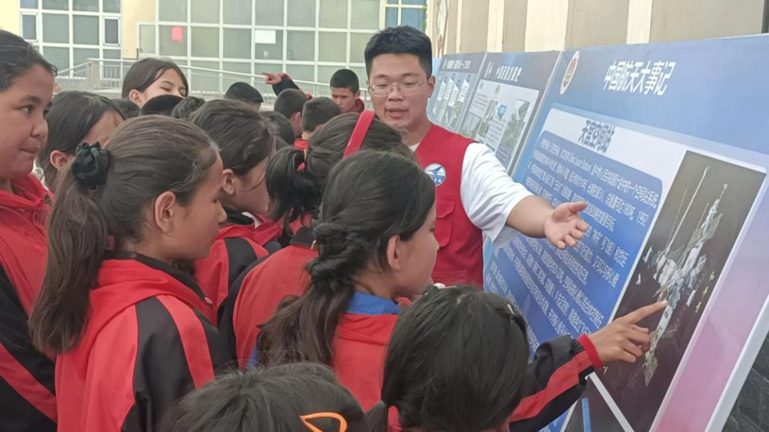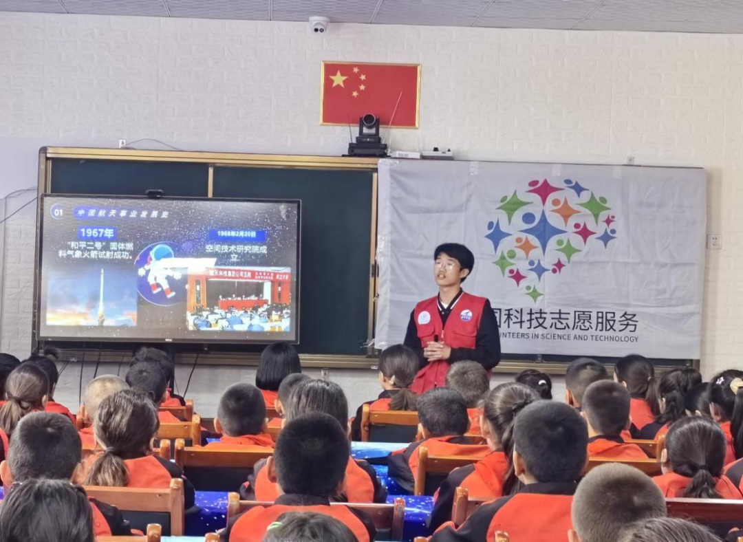 逐夢蒼穹,中國航天人對太空的探索從未止步。實踐團隊成員周王陽同學為孩子們現(xiàn)場講解展板上的航空航天大事記,帶領(lǐng)學生了解我國航天事業(yè)的發(fā)展歷程以及兩彈一星功勛人物,旨在加強中小學生對航空航天發(fā)展史的相關(guān)知識的認知與學習,激發(fā)對航空航天文化的興趣與愛好。