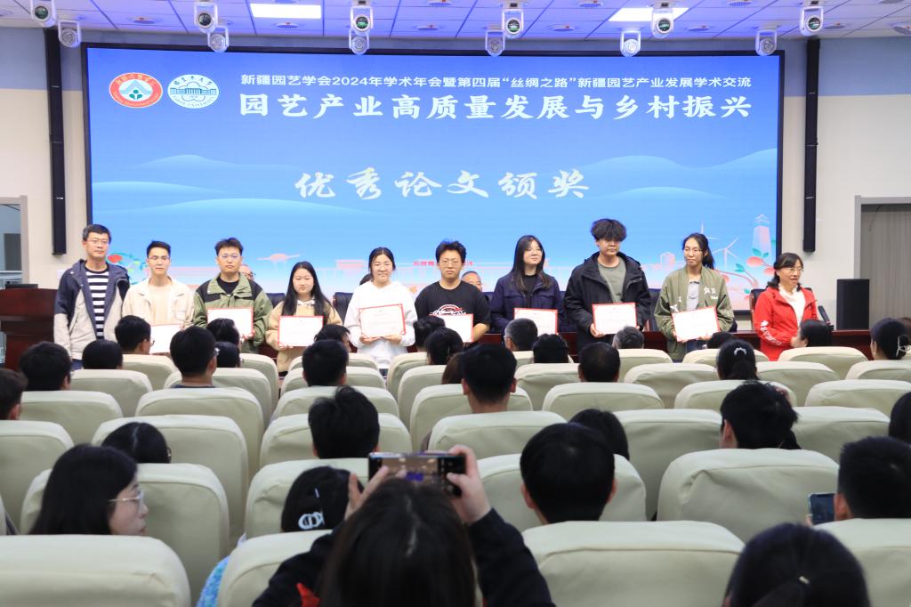 4月14日下午,舉行了大會優秀會議論文表彰儀式,塔里木大學園藝與林學學院黨委書記蔣學瑋在致辭中,祝賀各位獲獎選手,并囑托大家作為新疆園藝產業未來的希望,要牢固樹立服務產業、服務人民的信念,繼續認真學習,努力提升自己。此次會議共收到了參會會議論文78篇,經過14位專家評審的評議,共選出優秀參會論文28篇,其中一等獎5篇、二等獎11篇、三等獎12篇。