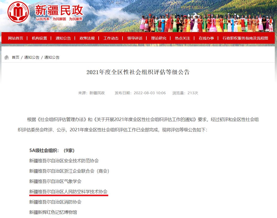根據(jù)《自治區(qū)社會組織評估管理辦法》和《關(guān)于開展2021年度全區(qū)性社會組織評估工作的通知》要求,經(jīng)過初評、全區(qū)性社會組織評估委員會終評、面向社會公示等程序,確定了新疆人防科技協(xié)會為5A級的社會組織,此等級為社會組織中的最高等級。