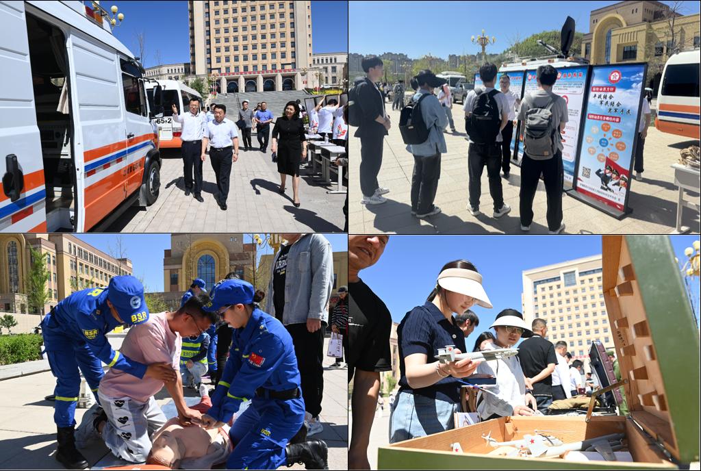 在新疆師范大學(xué)溫泉校區(qū)圖書館前廣場(chǎng),藍(lán)天救援隊(duì)開展了緊急心肺復(fù)蘇搶救、急救包扎術(shù)等應(yīng)急避險(xiǎn)技能展示與體驗(yàn),同時(shí)開展的還有,國防人防科普知識(shí)宣傳講解、人防標(biāo)識(shí)標(biāo)牌、戰(zhàn)爭(zhēng)中老兵收藏的紀(jì)念品、消防器材、氣象探測(cè)等實(shí)物的展覽。