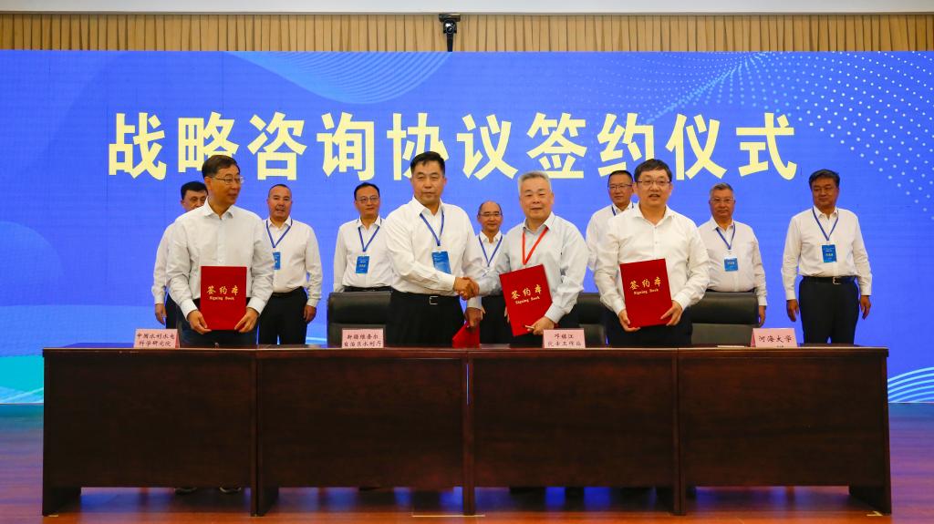 為共同推動新疆水利事業高質量發展,自治區水利廳與鄧銘江院士工作站、中國水科院、河海大學簽署戰略咨詢協議,與鵬城實驗室簽署戰略合作框架協議;塔里木河流域管理局與鄧銘江院士工作站簽署戰略咨詢協議。