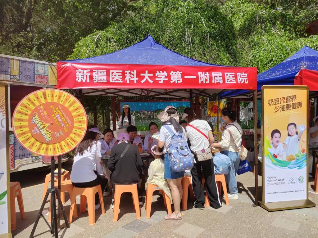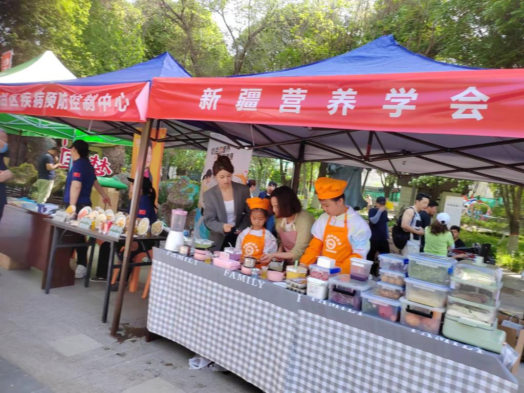 活動現場,新疆營養學會、新疆醫科大學第一附屬醫院、自治區人民醫院、自治區中醫醫院、自治區疾病預防控制中心、烏魯木齊市疾病預防控制中心、烏魯木齊市營養師協會等單位同步開展了各類人群營養診療義診、全民健身操運動體驗、健康知識問答互動、老年保健手指操互動、老年抗阻運動體驗、做健康美味飲食、親子互動游戲等內容的趣味性科普體驗活動。