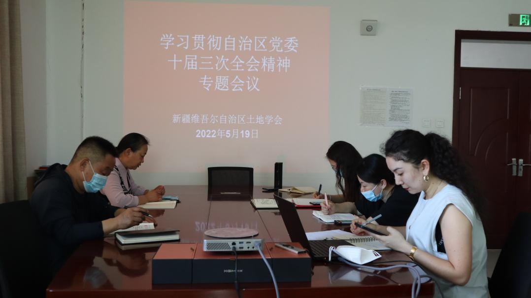 5月14日至15日,中國共產(chǎn)黨新疆維吾爾自治區(qū)第十屆委員會第三次全體會議在烏魯木齊召開。5月19日上午,新疆土地學會黨支部組織學習貫徹自治區(qū)黨委十屆三次全會精神,學會全體工作人員對全會精神進行了認真學習。