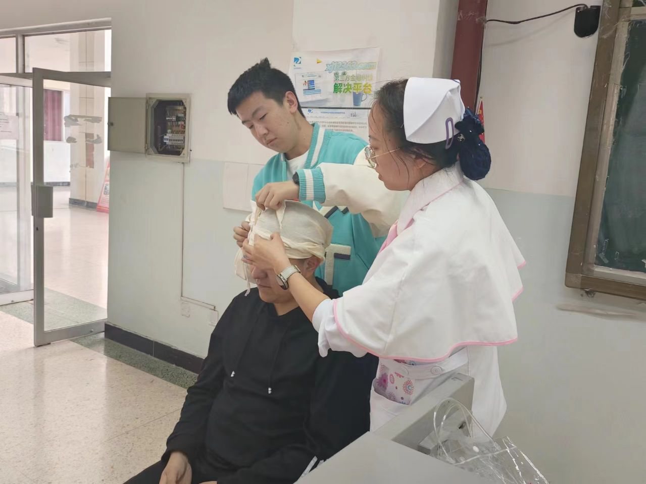 除了心肺復蘇和海立克姆急救法外,活動還重點介紹了止血包扎這一基本急救技能。詳細講解了不同部位出血時的止血方法以及正確的包扎技巧,并現場指導師生們進行了實踐操作。正確的止血包扎不僅可以有效控制出血,還能減少感染風險,為傷者爭取更好的救治條件。