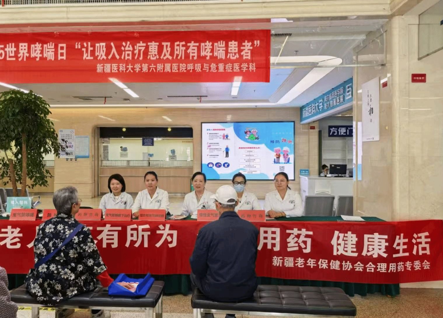 近日,新疆醫科大學第六附屬醫院呼吸與危重癥醫學科聯合老年保健協會合理用藥專委會的委員們在新疆醫科大學第六附屬醫院門診外科樓一樓大廳舉辦“世界哮喘日”義診和科普宣傳活動,旨在普及吸入藥物的正確使用方法,避免因操作不當導致藥效降低,消除公眾對激素類吸入藥物的誤解,倡導哮喘患者日常監測與長期管理,減少急性發作風險。