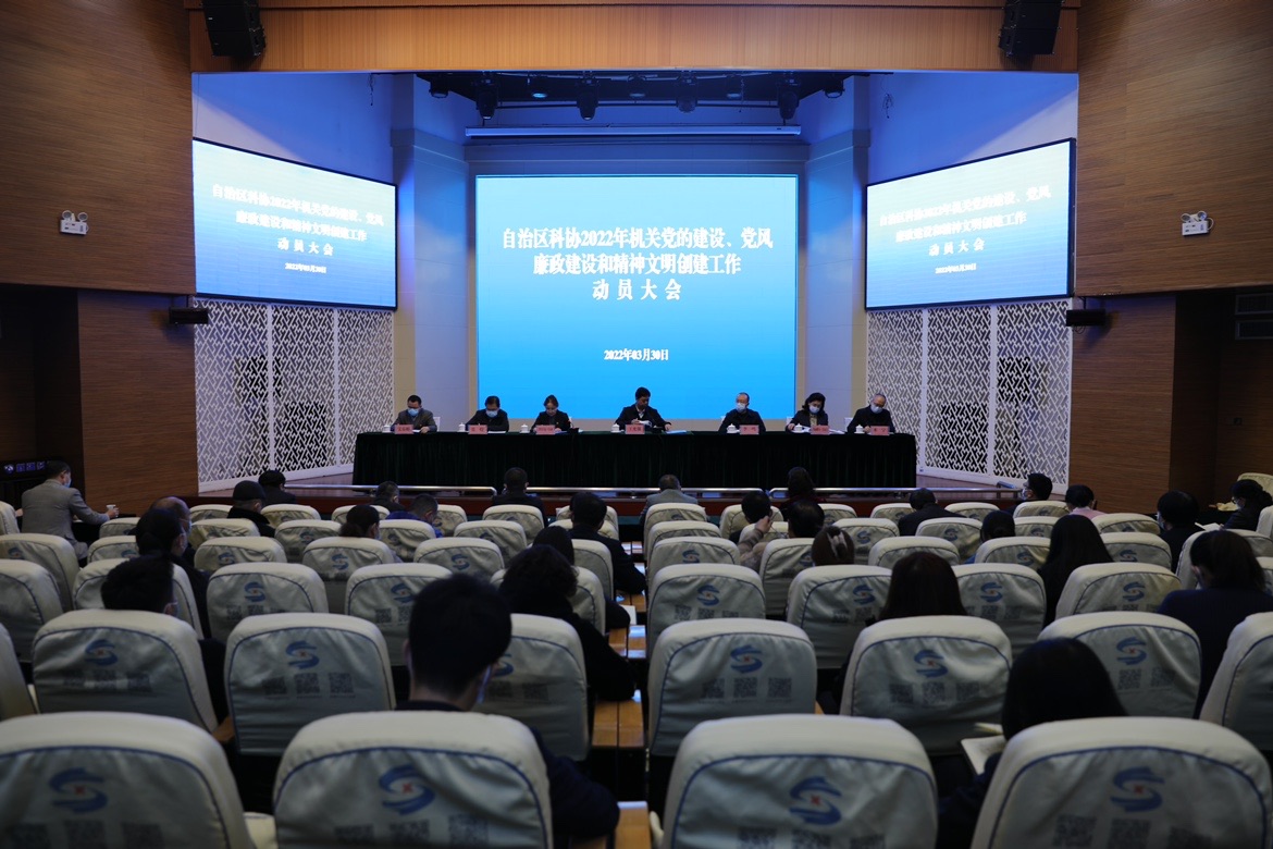 3月30日下午,自治區科協召開2022年機關黨的建設、黨風廉政建設和精神文明創建工作動員大會。會議以習近平新時代中國特色社會主義思想為指導,深入貫徹落實習近平總書記關于機關黨的建設、黨風廉政建設和精神文明建設的重要指示精神,貫徹落實黨中央決策部署和自治區黨委工作要求,按照自治區紀委十屆二次全會、自治區直屬機關黨的建設工作會議要求,總結2021年的工作,分析面臨的形勢,動員部署2022年機關黨建、黨風廉政建設和精神文明創建各項工作。自治區科協黨組書記王光強出席會議并作動員講話。自治區科協黨組成員、副主席李鳴、巴哈爾古麗·庫爾班、姑麗娜爾·吾布力、張煜,一級巡視員米寧、二級巡視員艾春根出席會議。自治區科協機關、事業單位全體干部職工參加會議。會議由巴哈爾古麗·庫爾班主持。