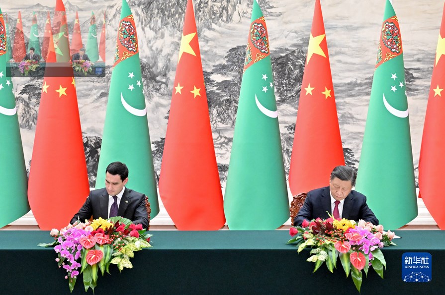 會談后,兩國元首簽署并發表《中華人民共和國和土庫曼斯坦聯合聲明》,共同見證簽署“一帶一路”、綠色發展、數字經濟、衛生、文化、體育、新聞媒體、天然氣等領域合作文件。