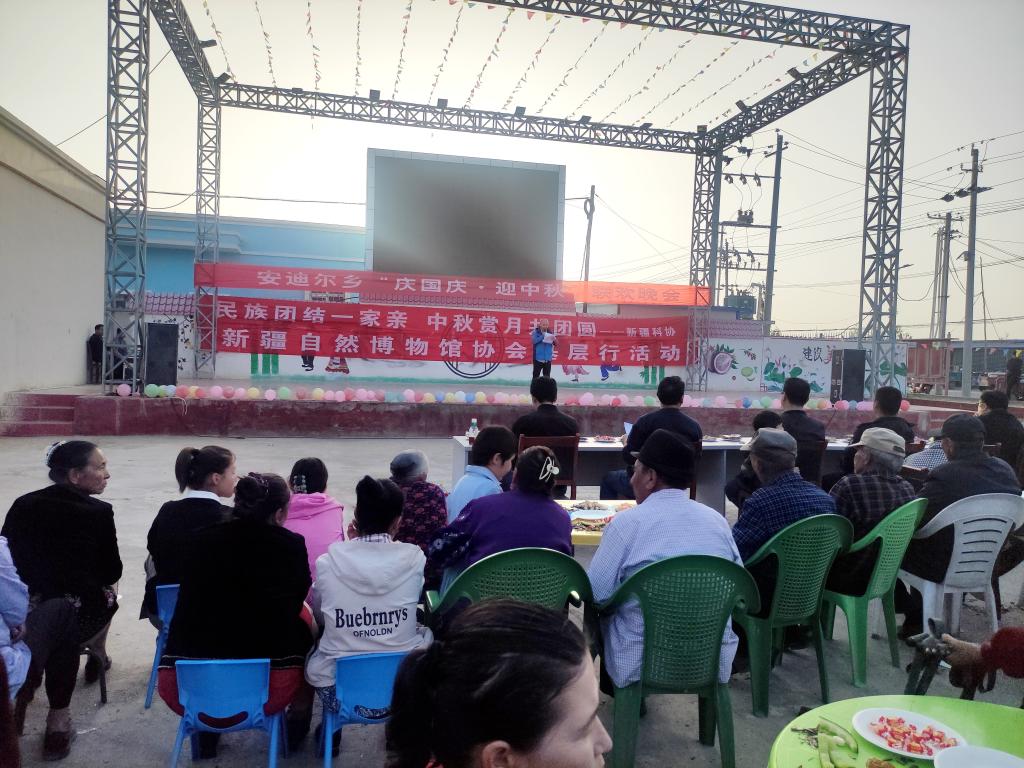 濃情中秋,月滿國慶,為進一步弘揚中華民族傳統文化,鑄牢中華民族共同體意識,激發廣大農牧民群眾的愛國熱情,9月29日晚,新疆自然博物館協會、自治區科協機關黨委、自治區科協駐村工作隊等單位聯合安迪爾鄉黨委組織開展了“慶國慶 迎中秋”文藝晚會,晚會在安迪爾鄉科技文化廣場舉辦,鄉黨委主要領導、駐村工作隊“老第一書記”、總領隊、各村第一書記、工作隊員、農牧民群眾等參加了活動。