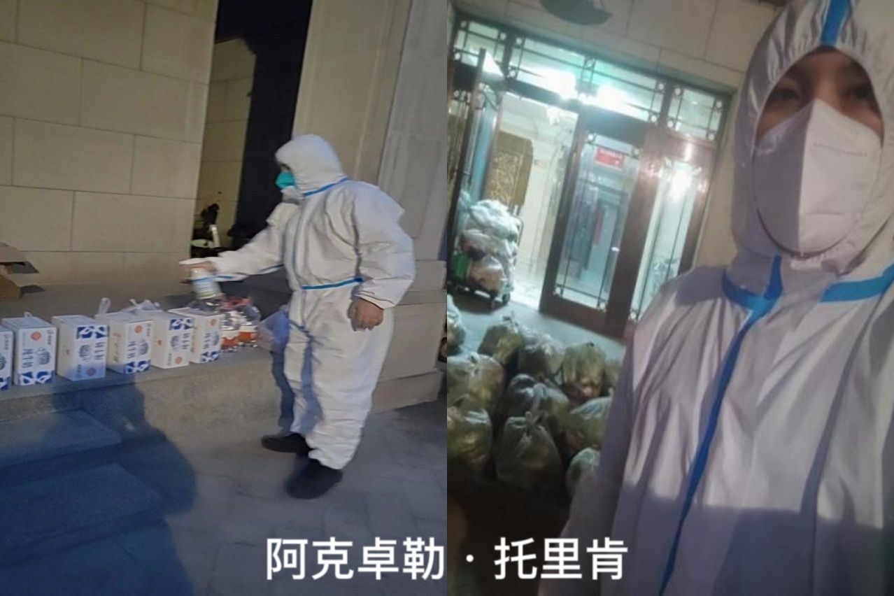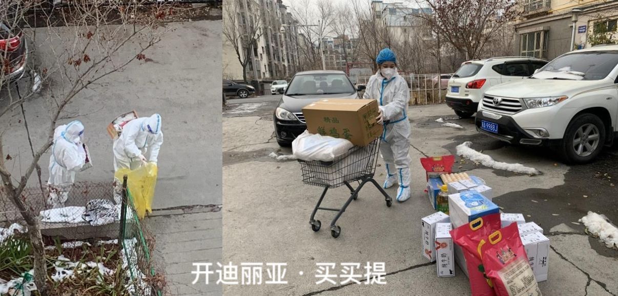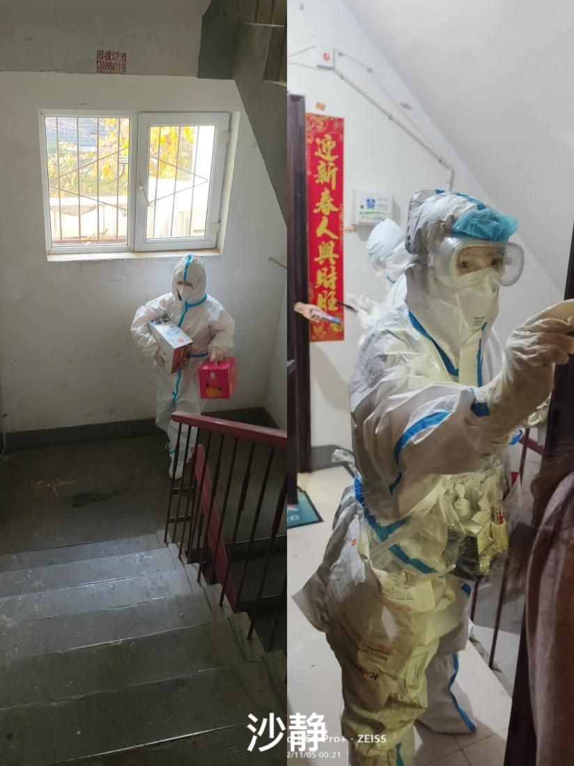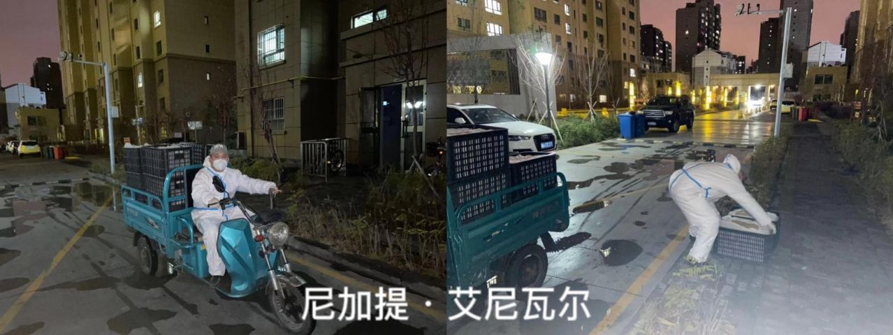 早晨八點,展覽中心開迪麗亞·買買提同志穿著密不透氣的防護服,開啟了三棟樓十五個單元的上門核酸采集工作。下午三點半,為居民配送米、面、油、蔬菜等生活物資。晚上為個別居民做抗原,填寫報備材料。“防疫工作真的非常辛苦,自己經歷過之后才知道有多不容易,每天早出晚歸,爬樓梯爬到腿軟,但是能夠得到居民的認可,一切辛苦付出都是值得的。”開迪麗亞·買買提說道。
