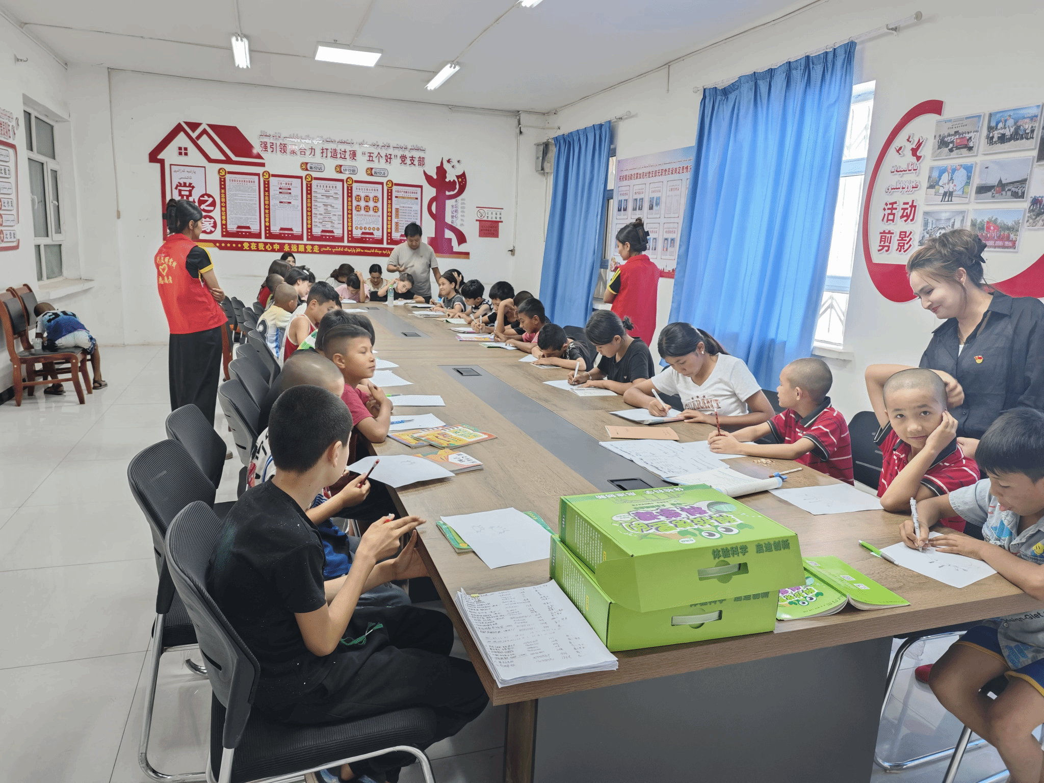 每日下午,瓊庫爾艾日克村村委會熱鬧非凡,村委會充分利用現有場地設施開設興趣班,由工作隊員、村干部、返鄉大學生等進行輔導,為孩子們搭建知識樂園與歡樂天地。百姓大舞臺上,小女生們隨著音樂旋律翩翩起舞,旋轉、跳躍間滿溢童真與活力;圖書室里,孩子們或坐或立,手捧心儀書籍,沉浸在書中的世界;村委會會議室中,孩子們用畫筆在一張寬大的長桌上盡情揮灑想象力,他們筆下,有家鄉的秀麗風光,有心中的斑斕夢想,彰顯著對生活的熱愛與對未來的憧憬;室外的籃球場上,籃球、跳繩撞擊地面的砰砰聲與孩子們的呼喊聲交織,當勒克蒙加克村為孩子們購置泳池,讓孩子們度過清涼愉悅假期。