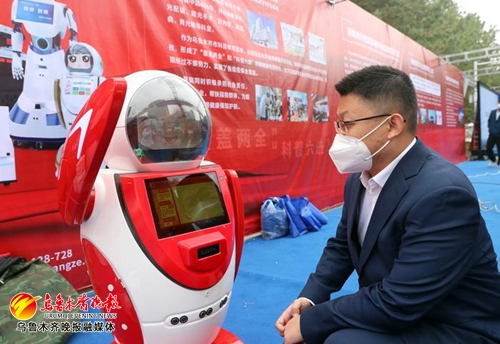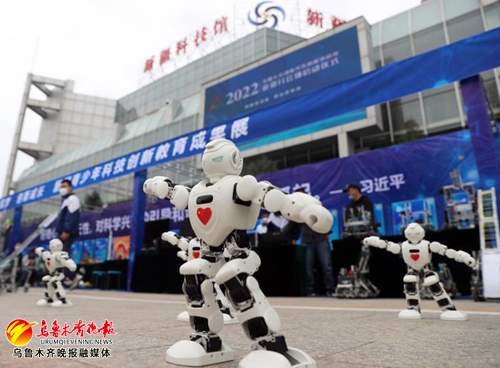 活動現場,來自烏魯木齊市第68中學的學生正在展示用人型機器人表演舞蹈。記者陳星宇攝