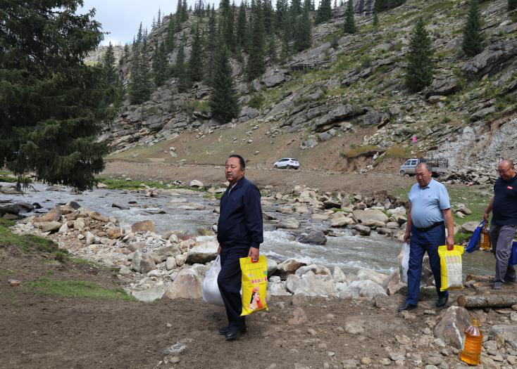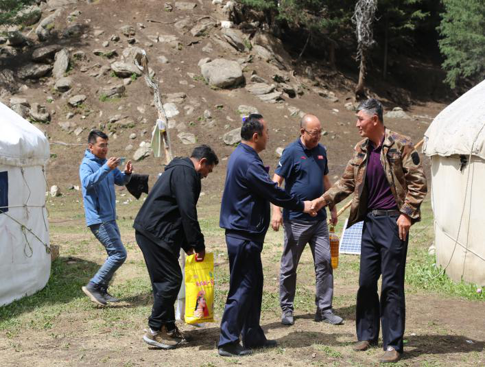 7月6日,阿勒泰地區科協黨組成員、主席孜亞提汗·胡那皮亞同志帶領科普隊干部前往地區鄉村振興示范村富蘊縣鐵買克鄉宏泰新村夏牧場開展“七一”、古爾邦節走訪慰問困難群眾活動,為困難群眾送去黨組織的關懷與節日祝福。