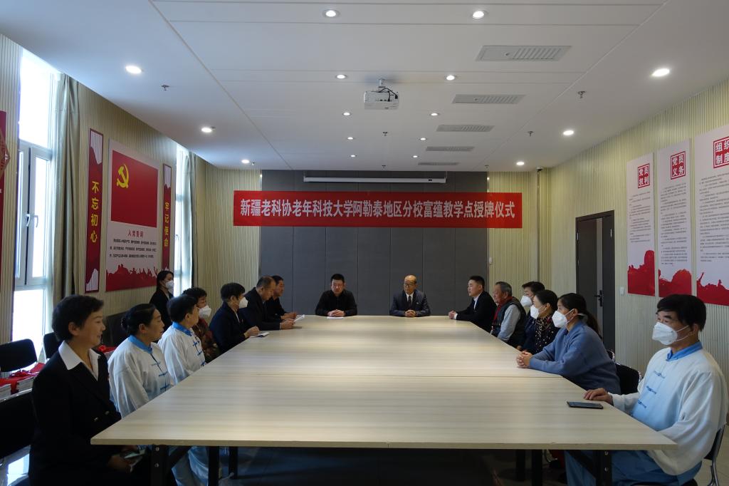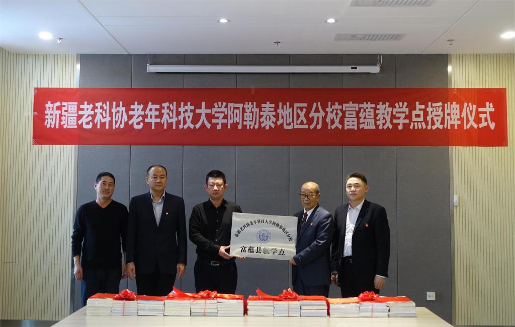 1月15日下午,新疆老年科技大學(xué)阿勒泰地區(qū)分校富蘊(yùn)縣教學(xué)點(diǎn)舉行揭牌儀式。富蘊(yùn)縣政府副縣長王飛為富蘊(yùn)教學(xué)點(diǎn)揭牌并贈書,縣委組織部、縣委宣傳部、縣科協(xié)、縣老干部局和部分學(xué)員代表等單位參加活動。