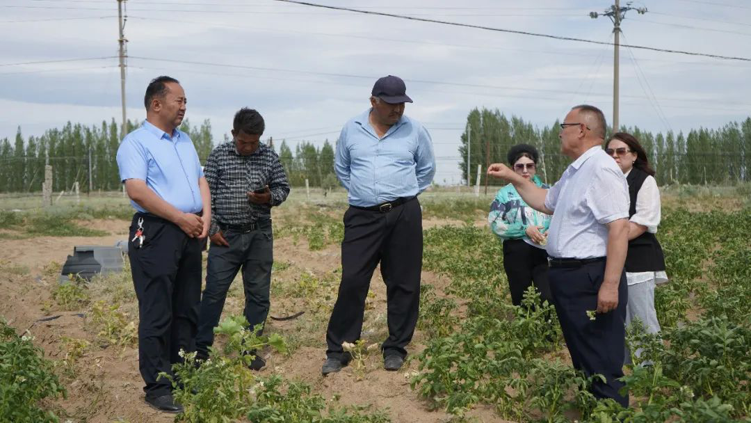 當前正值馬鈴薯夏管的關鍵時節,在加依勒瑪鄉拜格托別村馬鈴薯種植基地,地區科協的農業專業技術人員實地為馬鈴薯種植農戶提供“手把手、面對面”的技術指導服務,及時解答農業生產中遇到的實際難題,為實現農業增效、農民增收送上“農技錦囊”。