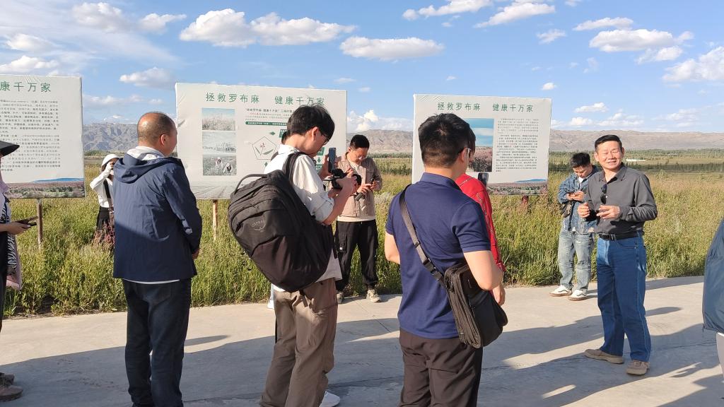 此外,科學(xué)文化傳播達(dá)人還來到戈寶紅麻花海景區(qū),打卡全球距海岸最遠(yuǎn)的地理標(biāo)志觀光塔。站在標(biāo)志塔上俯瞰淡粉色的花海,感受這份獨(dú)有的浪漫。大家品嘗戈寶茶,進(jìn)一步了解戈寶麻的生長環(huán)境、加工過程及產(chǎn)品應(yīng)用。戈寶紅麻花海景區(qū),以生態(tài)產(chǎn)業(yè)為特色,集觀光旅游、民俗展示、科普體驗(yàn)于一體。讓更多的科學(xué)文化達(dá)人在沉浸于這里的景色的同時(shí),了解到阿勒泰豐富的生態(tài)資源。