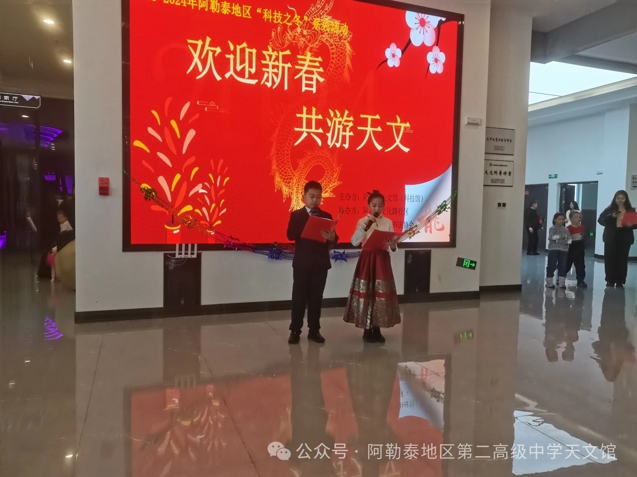 新春將至,為弘揚中華民族傳統文化,增進各民族之間的團結與友誼,2月7日下午,阿勒泰地區科協、阿勒泰天文館(科技館)聯合金山路街道文化路社區黨委、阿勒泰文化路社區黨委、阿勒泰市老干部局、阿勒泰文化館、白樺社工站黨支部,在阿勒泰天文館二樓大廳開展阿勒泰地區“科技之冬”系列活動——“歡迎新春,共游天文”活動。