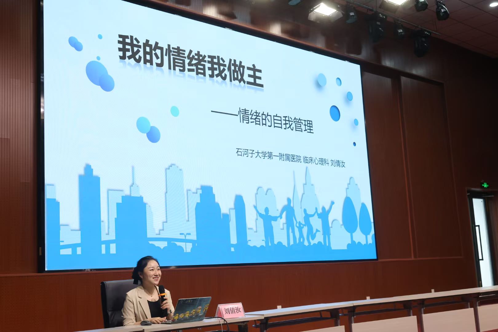 活動(dòng)現(xiàn)場(chǎng),劉醫(yī)師與大家互動(dòng)開場(chǎng),從認(rèn)識(shí)情緒、情緒是如何產(chǎn)生的、消極情緒與積極情緒的影響等多個(gè)方面進(jìn)行了情感的剖析。同時(shí),通過引用實(shí)際案例結(jié)合學(xué)生問答的方式寓教于樂,引導(dǎo)學(xué)生客觀認(rèn)識(shí)情緒、接納情緒、管理情緒,做情緒的主人。