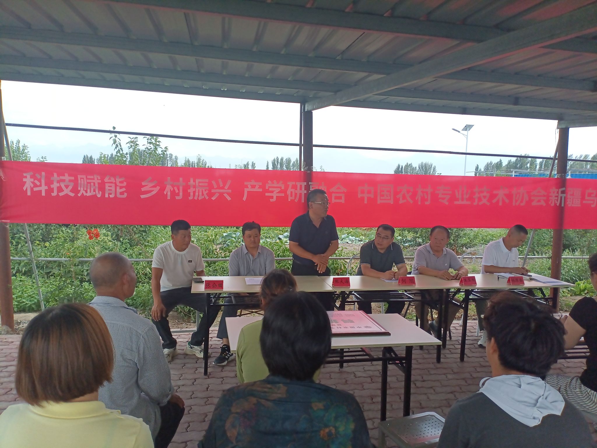 7月21日下午,新疆烏蘇桃“科技小院”掛牌儀式在烏蘇市哈圖布呼鎮(zhèn)田禹家庭農(nóng)場(chǎng)舉行。新疆農(nóng)業(yè)科學(xué)院園藝作物研究所張大海研究員、北京林果所王玉柱研究員、“科技小院”負(fù)責(zé)人張公田等出席活動(dòng)。各村隊(duì)果農(nóng)代表共30余人參加掛牌儀式。烏蘇市人民政府相關(guān)領(lǐng)導(dǎo)出席活動(dòng)并致辭,掛牌儀式由烏蘇市科協(xié)黨組副書(shū)記、主席孫厚典主持。