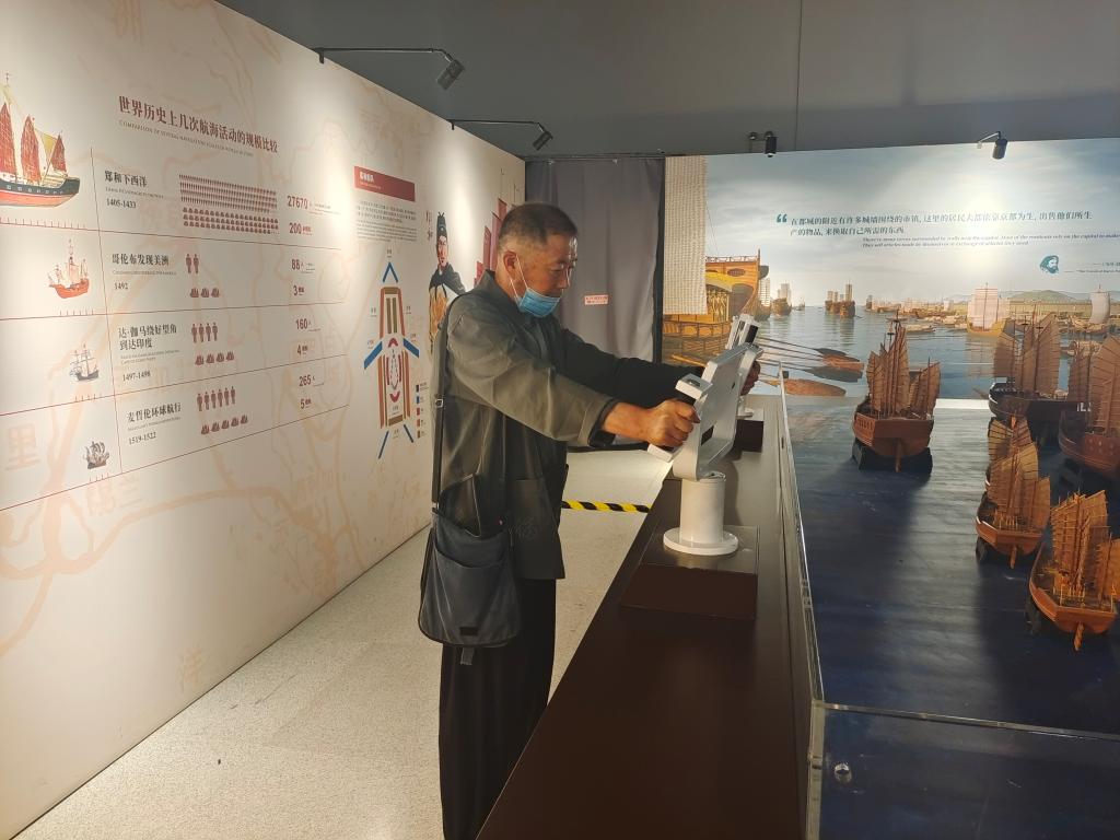 在走到鄭和下西洋的版面時,轄區(qū)老黨員徐慶玉叔叔還體驗了一把駕船航行的快樂。他說:這次的參觀活動很有意義。不僅學到了許多知識,還能夠邊體檢邊感受當時的發(fā)展情景,很不錯。