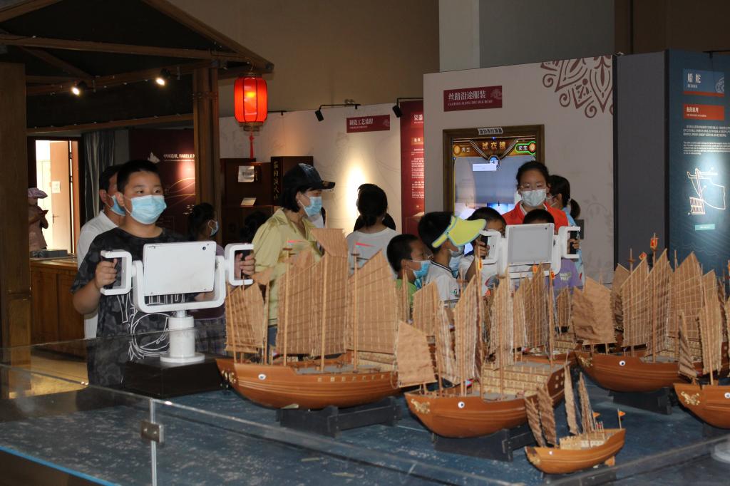 學生們興致勃勃地來到了《發(fā)現(xiàn)絲綢之路的智慧》主題展覽。整個展覽分為“對異域的想象”“帶什么商品去中國”“驛站與驛道”“漫游古代中國”“海上歷險”“世界在變”6個展區(qū)。在科技志愿者的引導下,學生們“化身”古代絲路旅行家和商人,領(lǐng)略沿陸上和海上絲綢之路傳播的古代科技與物質(zhì)文化,感受了一次古代商人挑選商品、運送貨物、在海上歷險的特殊經(jīng)歷,也詳細了解到古代中國的絲綢、陶瓷、紙與印刷術(shù)的科技原理、工藝流程、傳播過程和國際影響,進一步增強了民族自信心和自豪感。