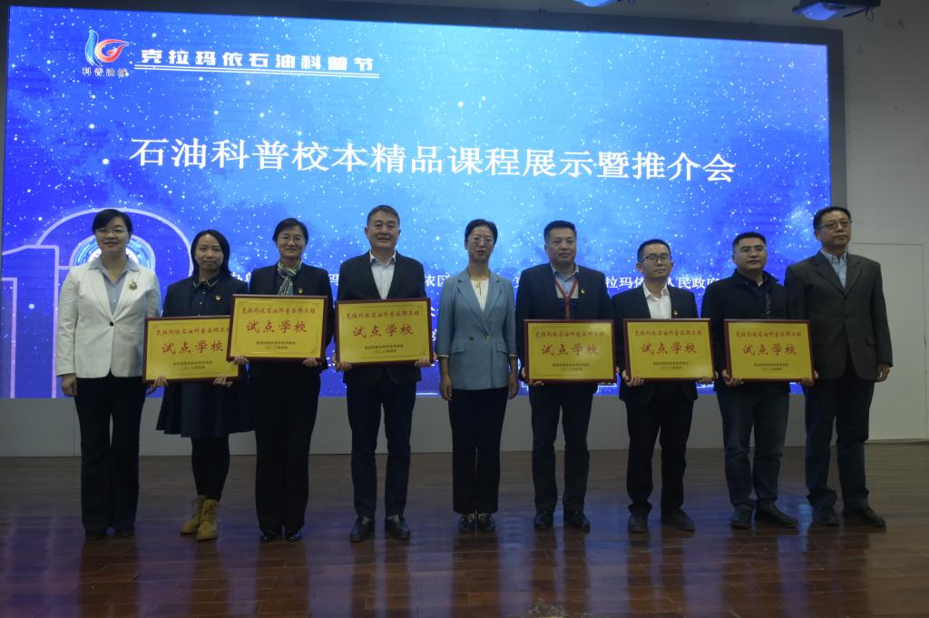 在本次推介會上,自治區(qū)科協(xié)、市科協(xié)、克拉瑪依區(qū)領(lǐng)導(dǎo)為3所克拉瑪依石油科普品牌“示范學(xué)校”,6所克拉瑪依石油科普品牌“試點學(xué)校”授牌。