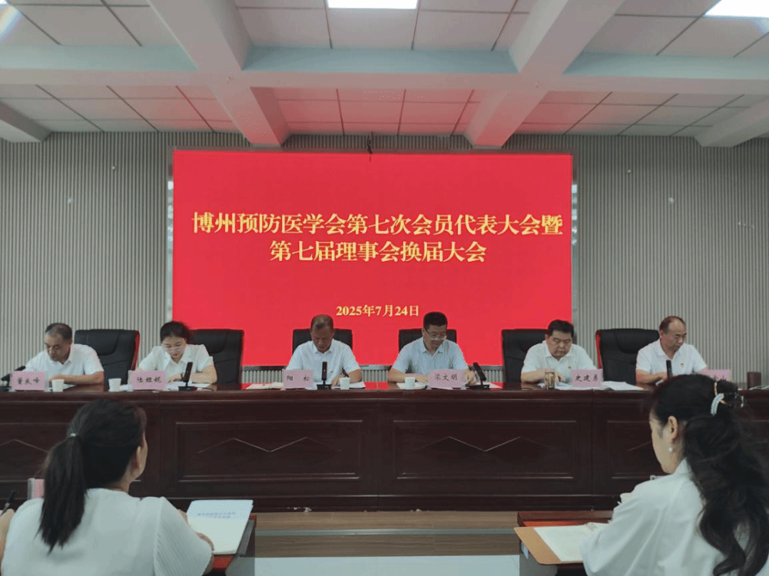 會議聽取并審議《博州預防醫學會章程》(修訂草案)《博州預防醫學會第七屆理事會會費標準》(草案)等相關事宜,選舉產生了博州預防醫學會第七屆理事會理事長1人、常務副理事長1人、副理事長5人、秘書長1人(兼任)、常務理事16人、理事69人。