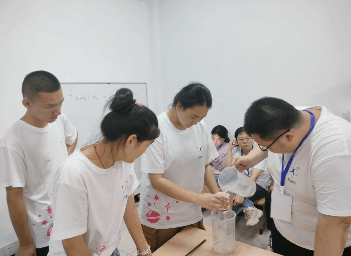 實驗探索環節,同學們走進實驗室,親身體驗先進科研設備和實驗環境,在專業老師的指導下,開展有趣味性和挑戰性的化學實驗,感受科學研究的魅力,從色彩斑斕的化學反應到奇妙的物質變化,每一次成功的實驗都伴隨著陣陣驚喜的歡呼。
