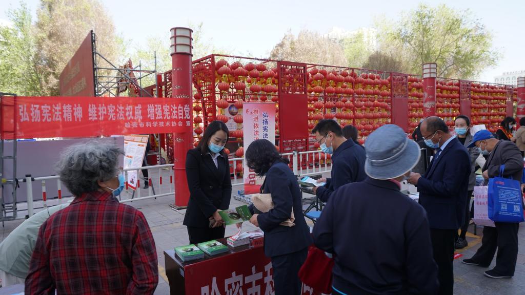 為普及憲法知識,增強人民群眾法治意識,4月14日,在自治區第十九個“憲法法律宣傳月”,哈密市科協聯合市司法局、市公安局、市中級人民法院等58家單位在時代廣場開展法治宣傳和法律咨詢服務活動,科普《憲法》《民法典》等相關知識。