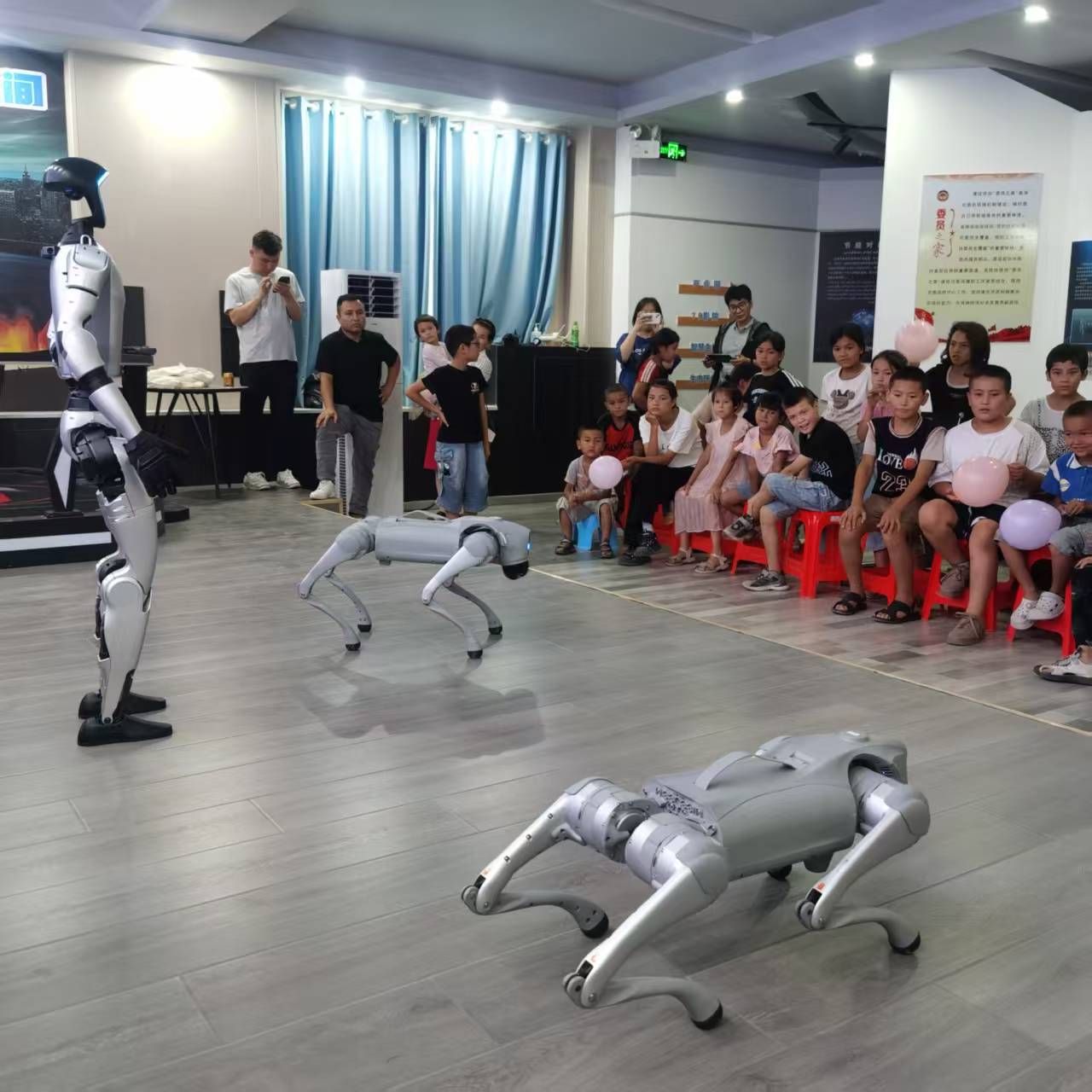 當銀灰色的宇樹機器人邁著歡快的步伐走進孩子們的視野,在工作人員熟練操控下,宇樹機器人靈活自如地完成行走、奔跑、招手、飛吻等動作。其流暢的運動軌跡和擬人化的表現力引得現場驚嘆連連,孩子們目不轉睛,近距離感受著現代機器人技術的魅力。
